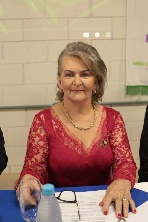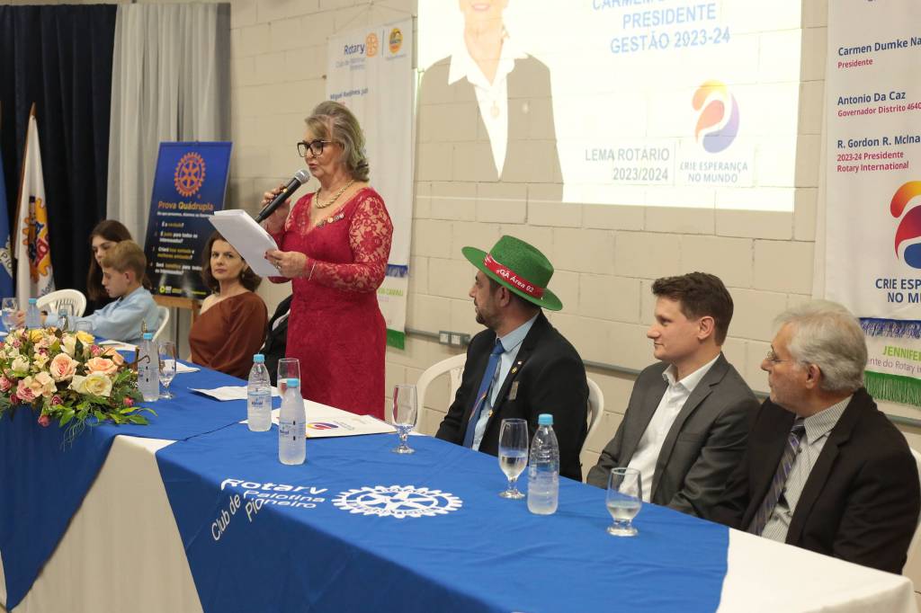 Em ato continuo ocorreu à transmissão de posse da nova diretoria do Rotary Club Palotina Pioneiro, onde o Presidente Vladimir do Amaral, gestão 2022/2023, transmitiu o cargo a companheira presidente entrante Senhora, Carmem Dumke Nava, gestão 2023/2024.