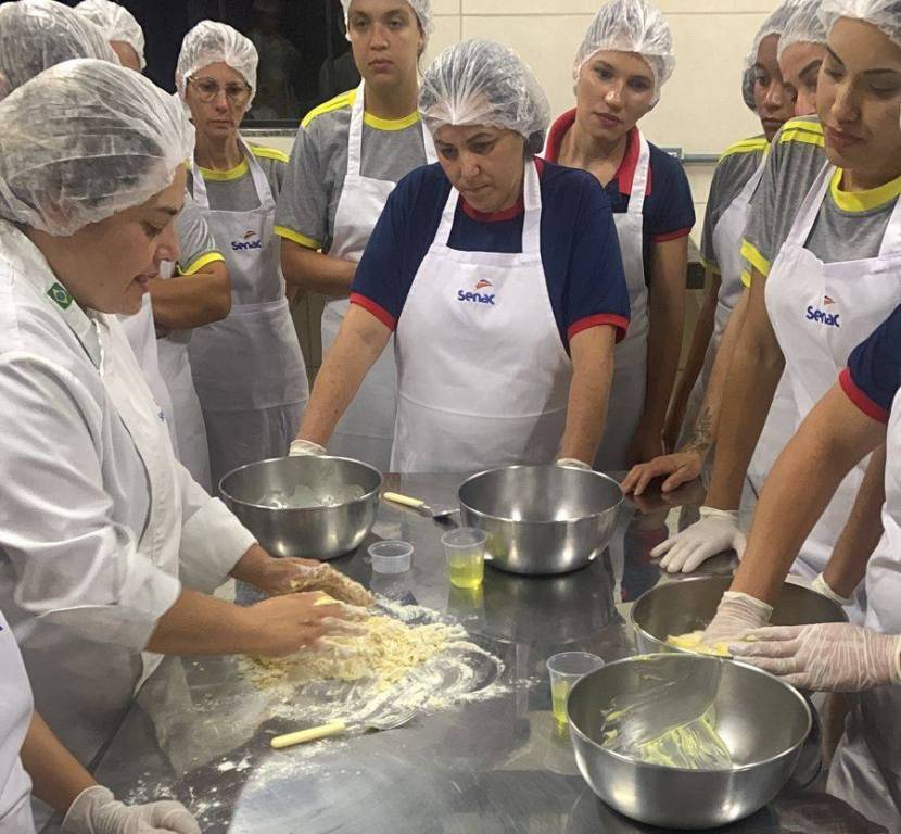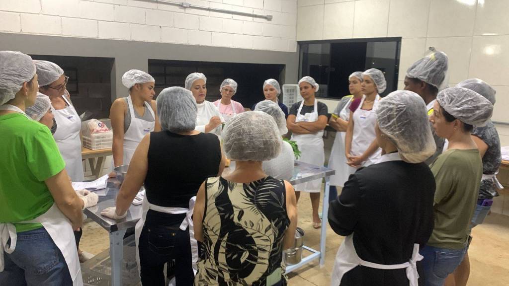 Cerca de 17 mulheres da escola CEEBJA participam da qualificação que tem como finalidade ensinar as principais técnicas para a preparação de diferentes tipos de salgados.