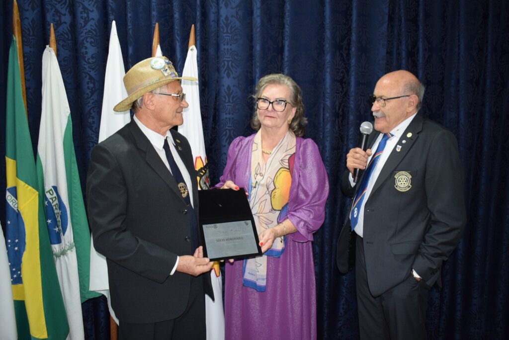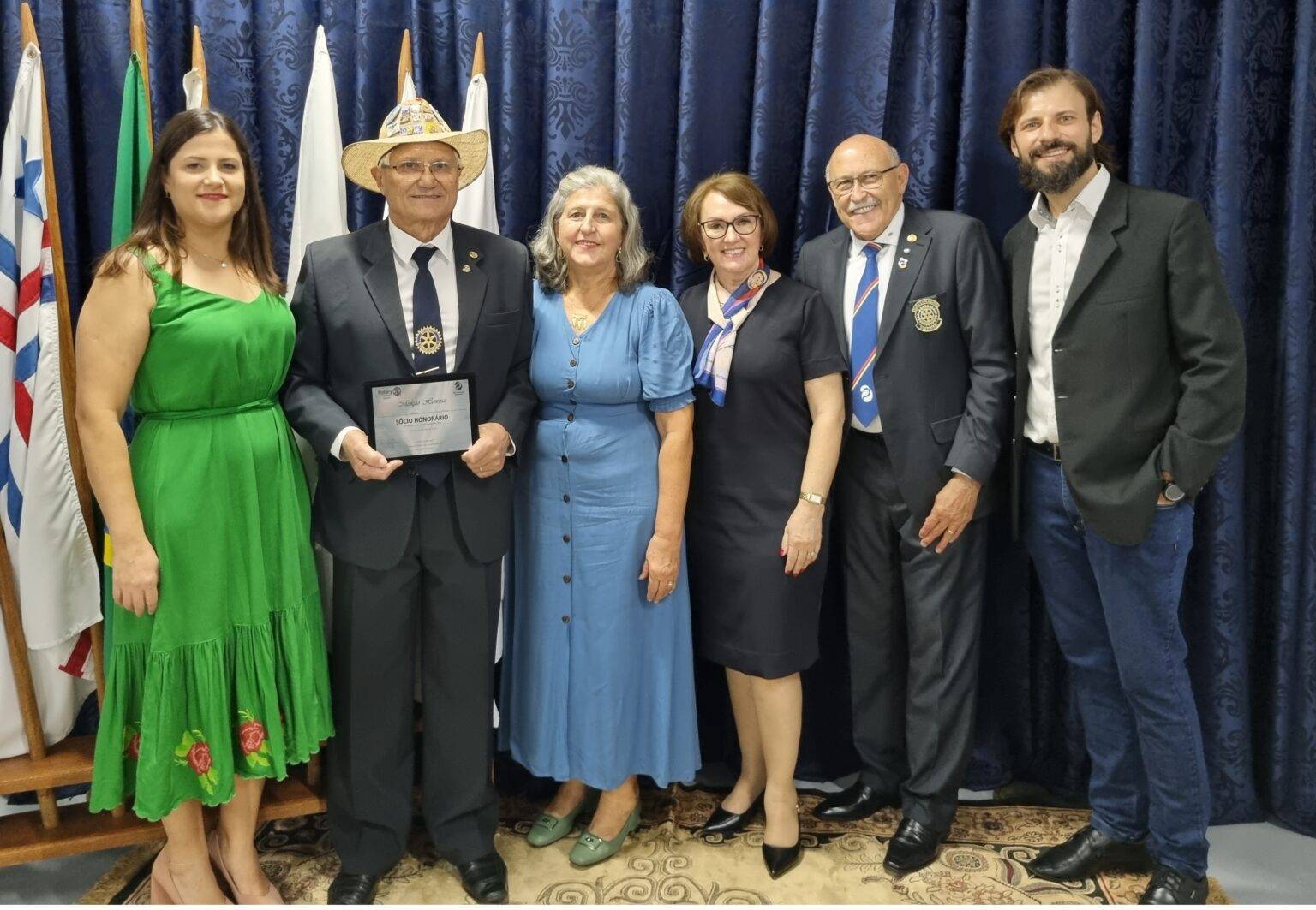 A reunião que aconteceu na última quinta-feira (06) na Casa da Amizade, do Rotary Club de Palotina Pioneiro, foi marcada pela emoção nos momentos em que o rotariano Sr. Augustinho Fossá recebeu Menção Honrosa e título de Sócio Honorário deste clube. Esta distinção, segundo o estatuto rotário, é concedida para Rotarianos em razão de sua dedicação ao Clube de Rotary.