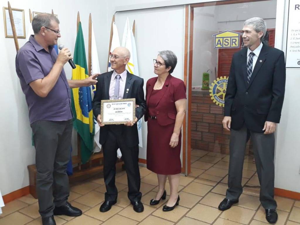 O Rotary club de Palotina Pioneiro realizou na última quinta-feira (31) reunião festiva com posse de novos companheiros e cerimônia de entrega de título de sócio honorário e repasse de parte do valor arrecadado no primeiro Pedal do Rotary e MTB.