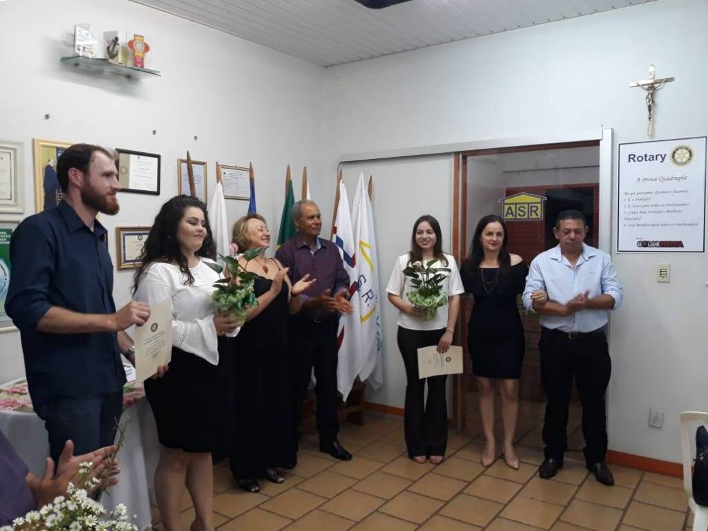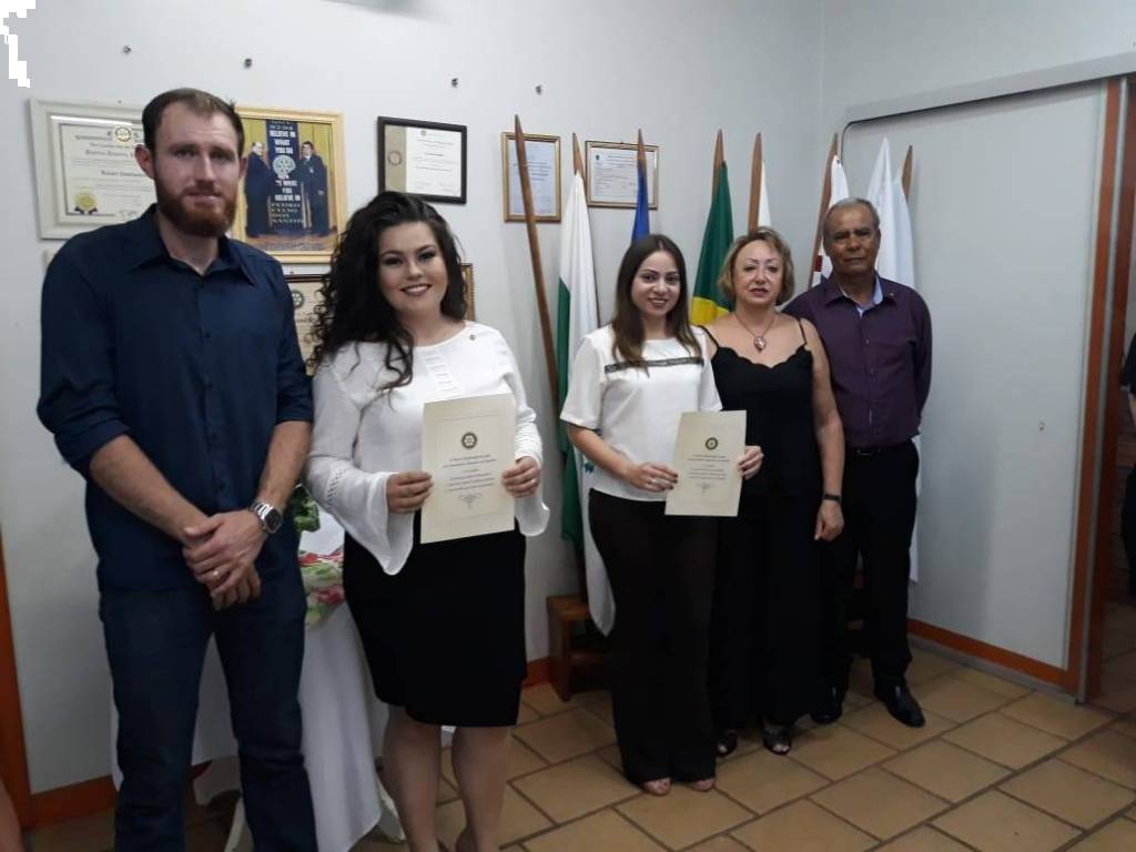 GHEYSA LUCIANA SANTIAGO SCHWARZ, a qual é enfermeira e atualmente exerce a função de Enfermeira Auditora na UNIMED Vale do Piquiri e a médica BRUNA RAFAELLE RODRIGUES, que é servidora pública do município de Palotina, são as mais novas integrantes da família rotaria palotinense, ambas tiveram como madrinha a companheira IRENE REI DA SILVA.